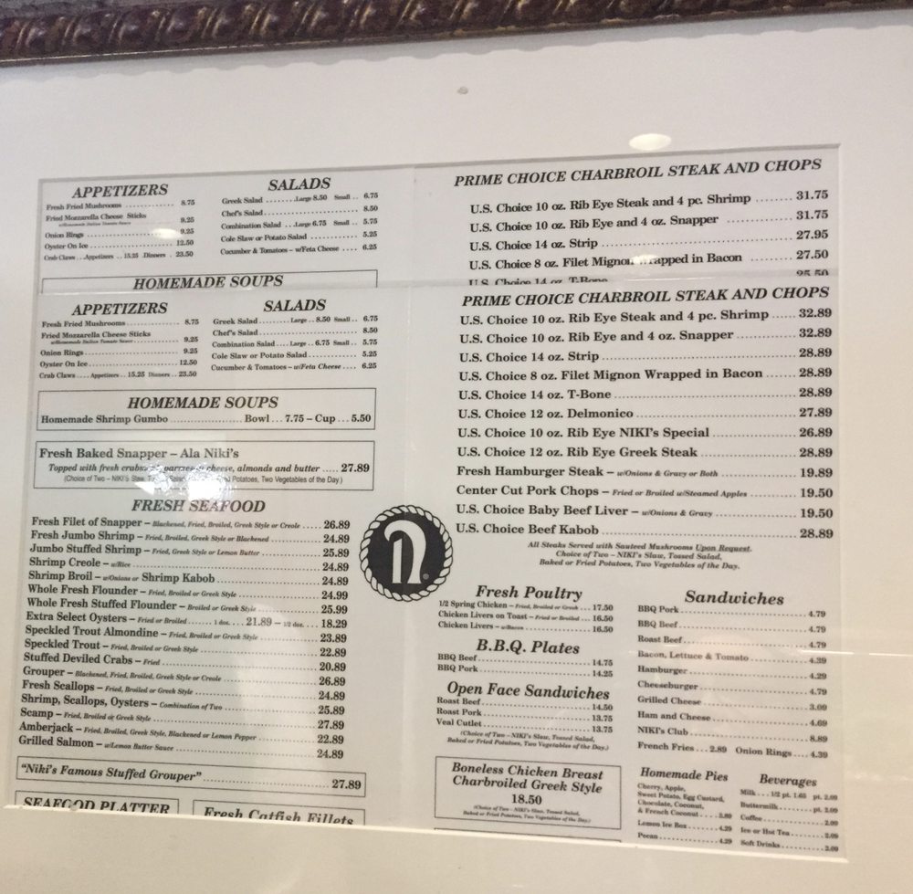Niki’s West Steak And Seafood Restaurant Menu (Update 2025)