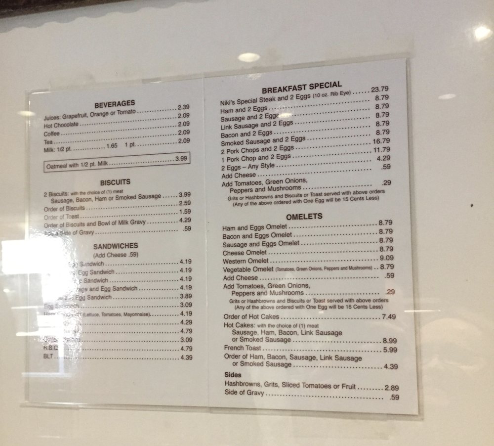 Introducing the menu at Niki’s West Steak And Seafood Restaurant, located in Birmingham, AL, is a culinary delight with its Southern steakhouses and seafood offerings. From appetizers like Fresh Fried Mushrooms and Shrimp Cocktail to homemade soups such as French Onion Soup and Shrimp Gumbo, the menu showcases a variety of flavors. Indulge in salads like Greek Salad or Shrimp Salad, offering a refreshing start to your meal. Customer reviews highlight the exceptional quality of the dishes, with compliments on the blackened tilapia, mac & cheese, collard greens, and more. The cafeteria-style setting adds to the charm, creating a welcoming atmosphere for guests. Whether enjoying lunch or dinner, Niki’s West promises a satisfying dining experience that will leave you coming back for more.
